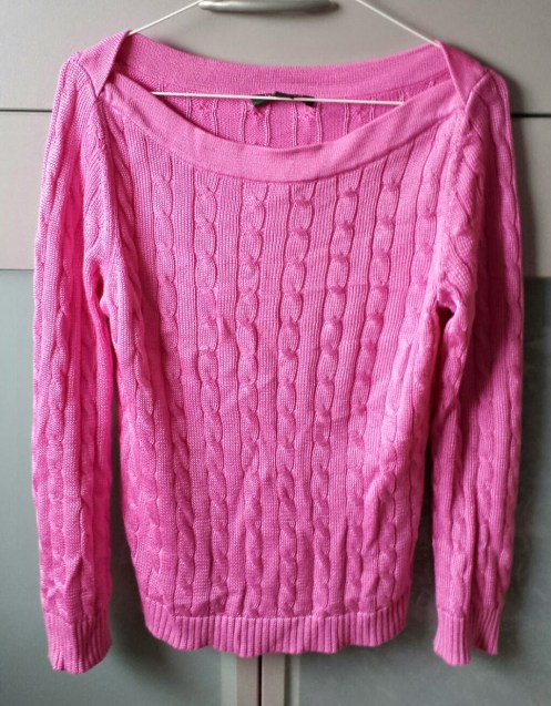 Ich habe zwei meistgetragene Pullover und das ist einmal ein pinker Strickpulli von Ralph Lauren und der andere ist ein Cashmere Pulli von 1,2,3 Paris.