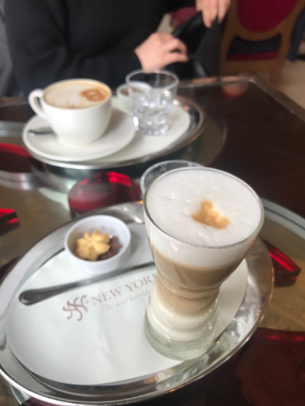 Eines der bekanntesten Restaurants in Budapest ist wohl das Mazel Tov. Dort schmeckt das Essen einfach super, allerdings ist es für Budapester Verhältnisse etwas teurer. Gute Burger gibt es im W35 (der Inhaber dort spricht sogar deutsch und war auch super nett ), ansonsten kann ich euch den Karaván Street Food Market nur ans Herz legen. Dort gibt es wirklich alles, außerdem schmeckt es dort suuuper lecker und ist noch dazu echt günstig. Wo man auch unbedingt auf ein Bier oder auch eine heiße Schokolade (die ist dort nämlich himmlisch) hin muss ist der For Sale Pub. Dort kann man sich außerdem auf einem Plakat verewigen, das man dann später an die Wand hängt. Wenn man es jedoch fancy mag und 7€ für seinen Kaffee bezahlen möchte, ist man im Café New York genau richtig.