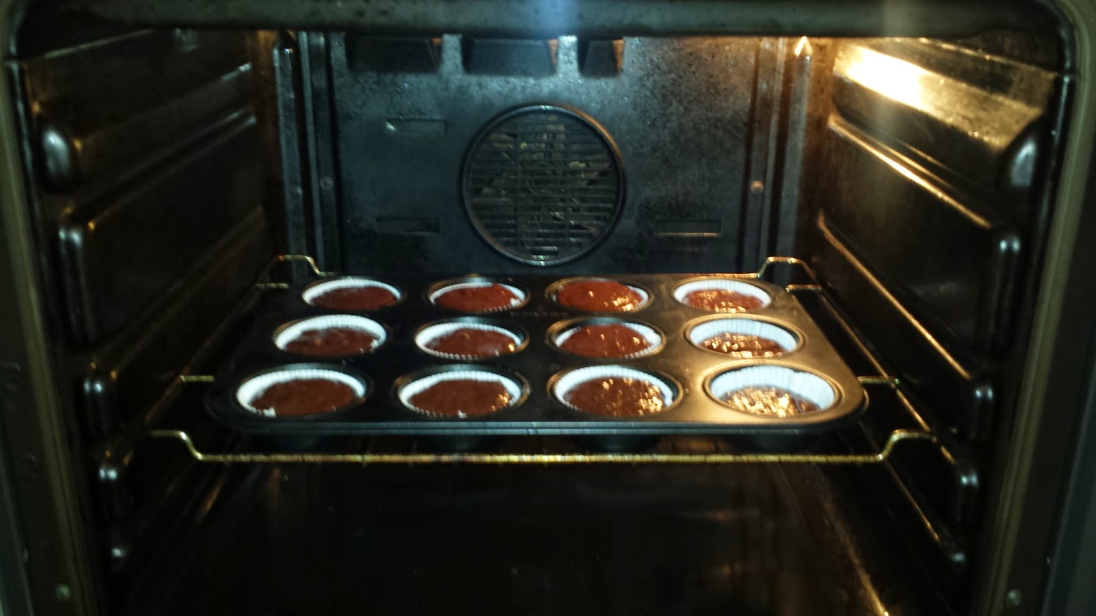 Das ganze muss jetzt bei 180° Ober- und Unterhitze für gut 20 Minuten in den Ofen.