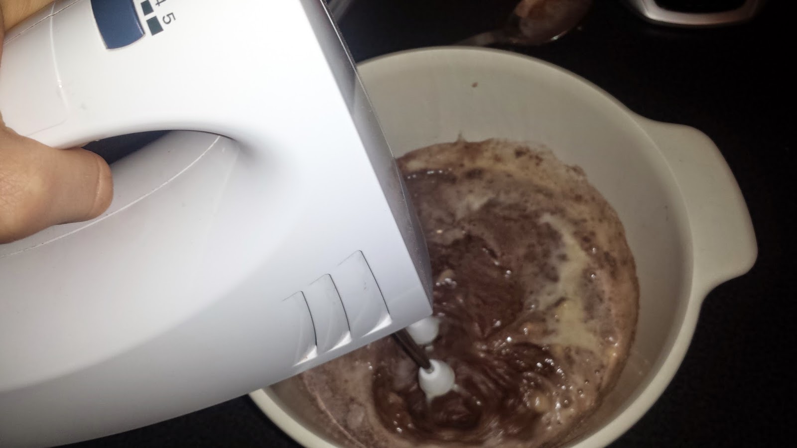 Danach gebt ihr das Mehl (ich habe bei dem Vollkornmehl geschmacklich überhaupt keinen Unterschied zu normalem Mehl geschmeckt) in eine Schüssel und vermischt es mit dem Zimt, Backpulver, Natron und Kakaopulver.
