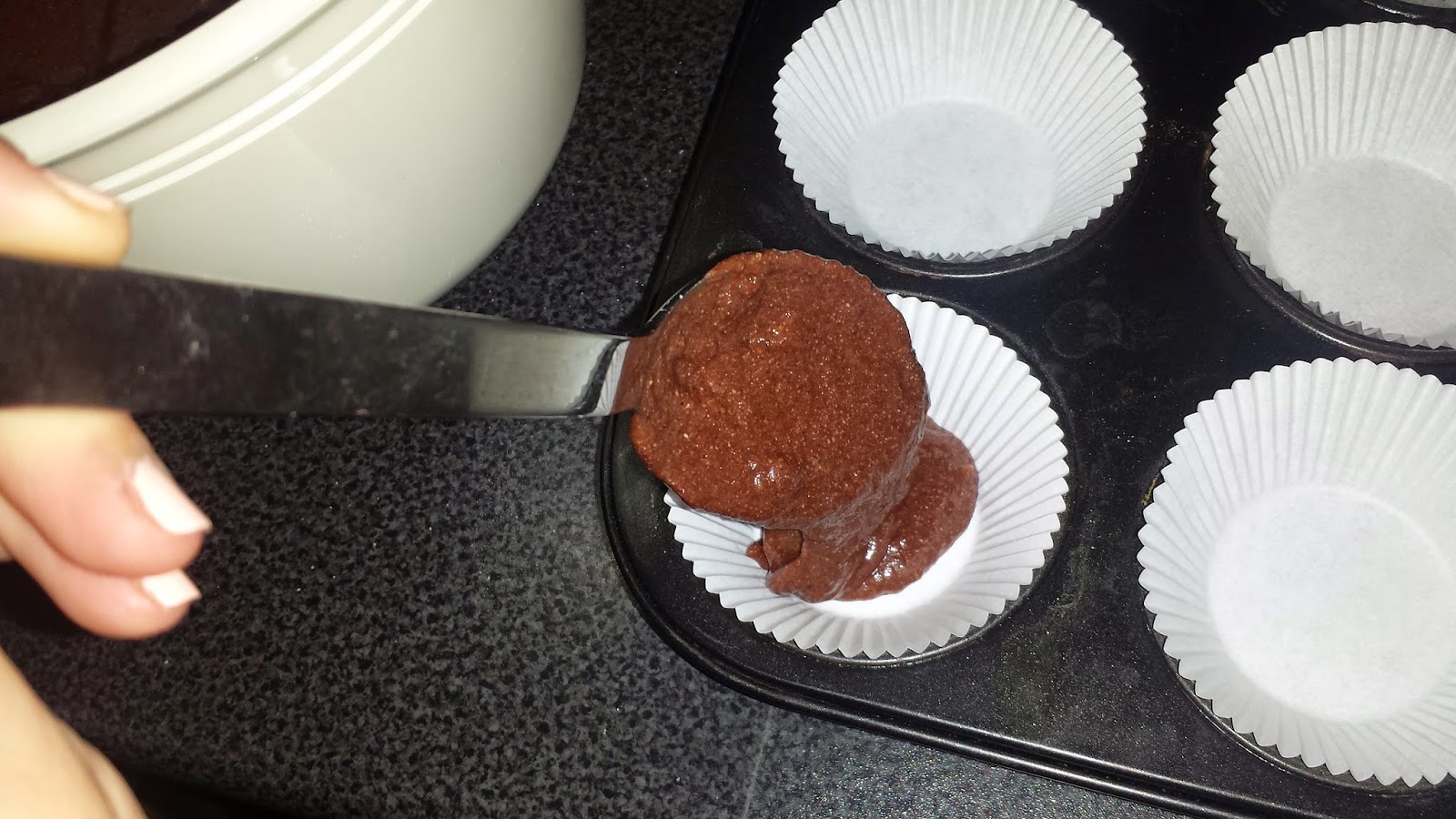 Zu guter letzt vermischt ihr das ganze mit der Mehlmischung und füllt den Teig in die Förmchen.
