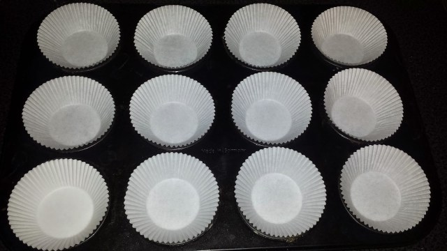 Zu allererst solltet ihr den Ofen auf 180° Ober- und Unterhitze vorheizen und die Muffinförmchen schonmal in das Blech einsetzen, dann müsst ihr das später nicht mehr tun.