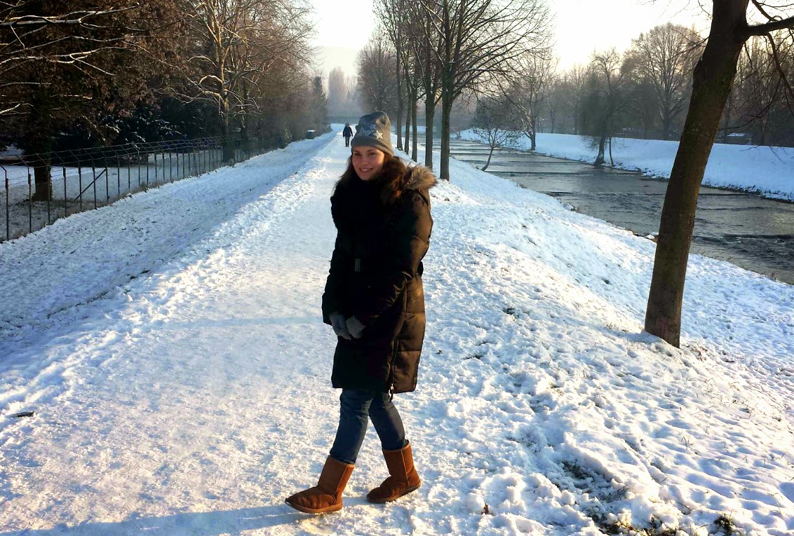 Mit zwei Freundinnen, mit denen ich nach der Uni noch Eis essen war.